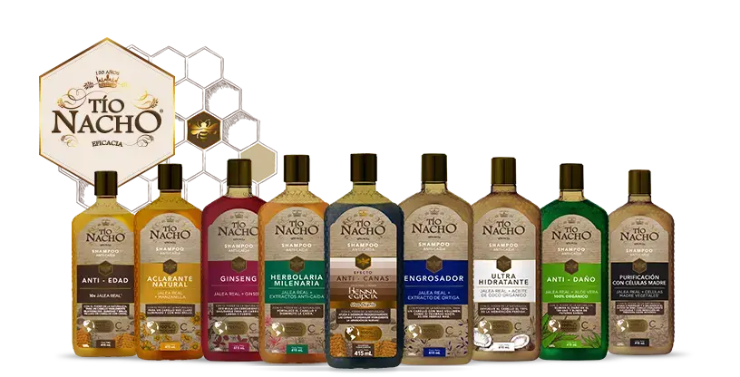 Ahora, dependiendo del país donde estés, podrás encontrar diferentes líneas de Tío Nacho para tu necesidad y que además de champú pueden contar con acondicionador y tratamiento. Por ejemplo: